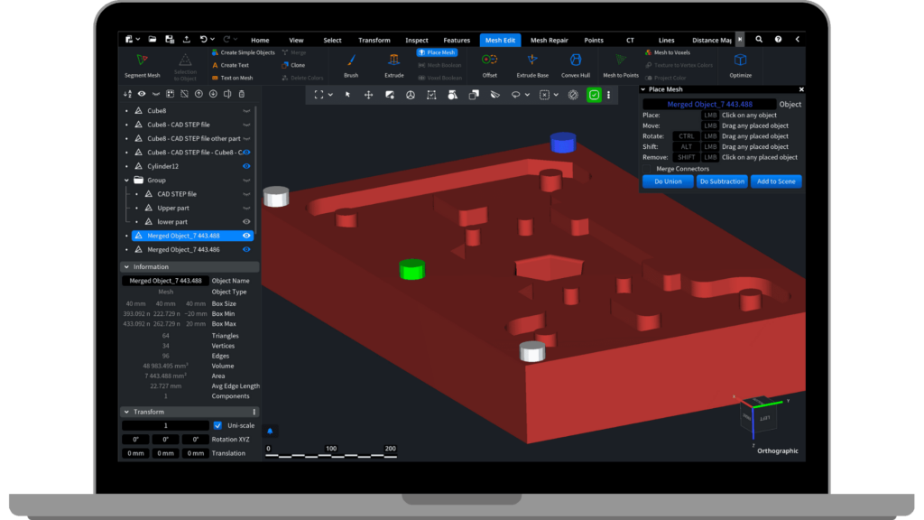 The new Place Mesh tool lets you easily position a mesh onto another surface—ideal for logos, connectors, and more. After placing, choose Boolean Union, Boolean Subtract, or keep objects separate for full flexibility!