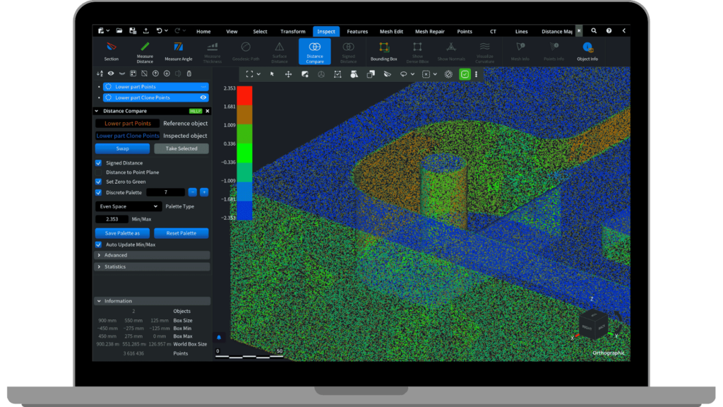 • Distance Compare tool: You can now compare meshes and point clouds in any combination, including cloud-to-cloud and cloud-to-mesh comparisons.