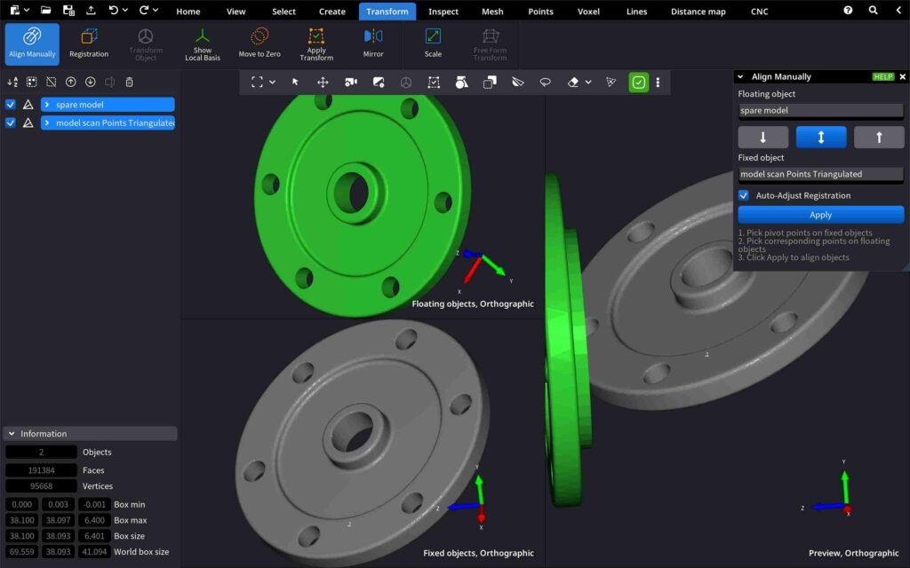 • Automatic Alignment (Registration): Seamlessly align models in one click.
