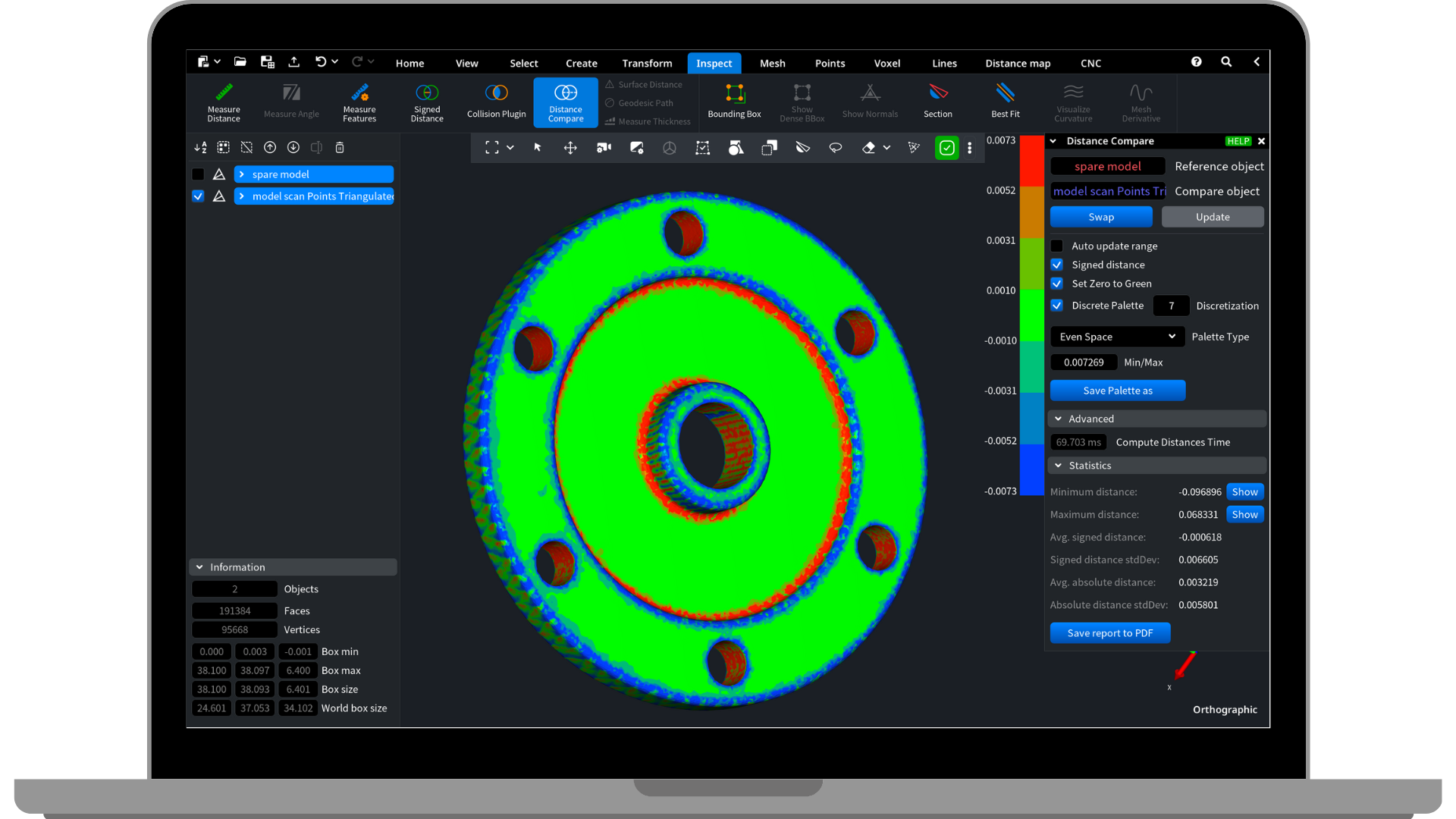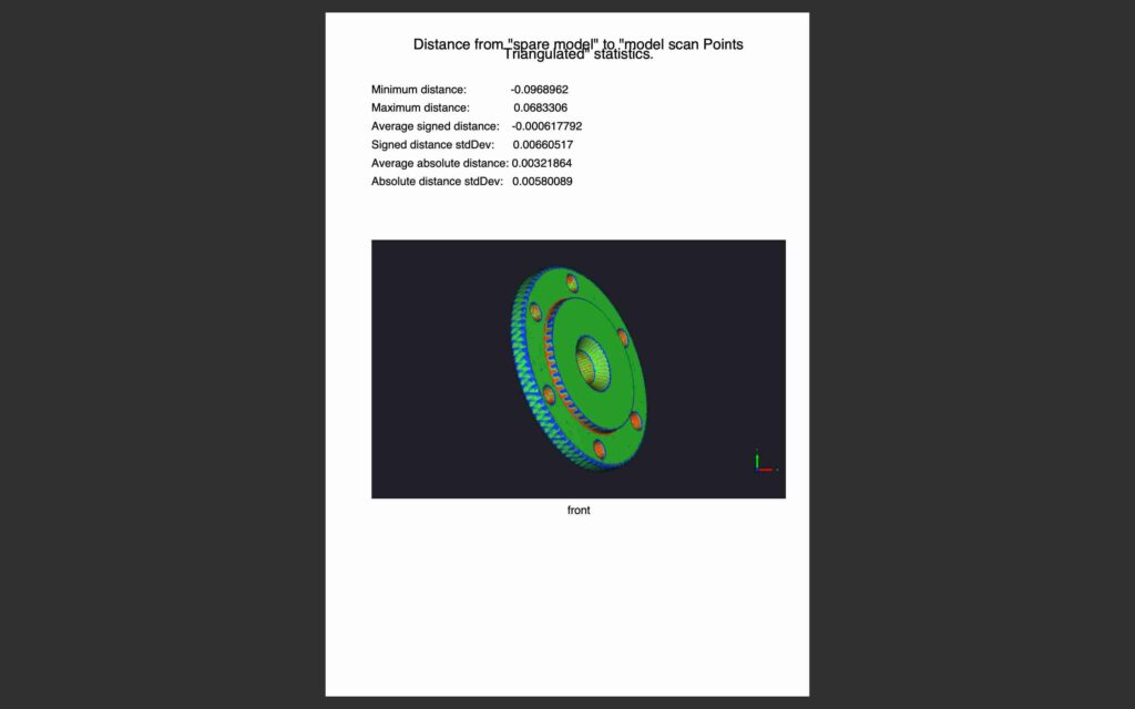 MeshInspector provides the “Distance Compare” tool, which utilizes a Color Deviation Map to meticulously analyze surface disparities and ensure your produced model meets the highest standards when compared to the original CAD design.