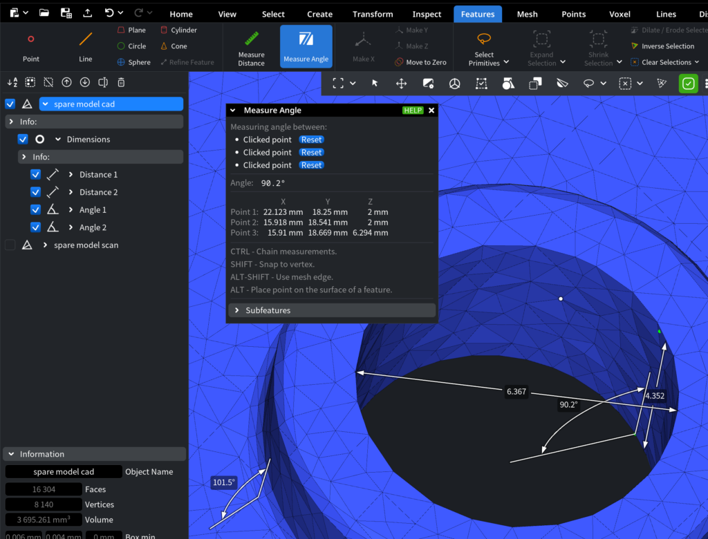 MeshInspector offers robust tools for measurement, allowing you to make all the calculations quickly: